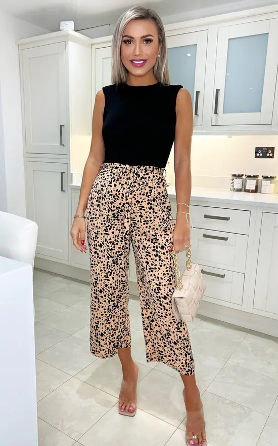 Embrace this season’s print trend with this Black and Peach 2 in 1 Animal Print Jumpsuit. Featuring a back zip fastening, flattering tie waist, shoulder pads and pockets. This jumpsuit is the perfect item to take you from day to night. Simply add statement earring and clutch bag to finish off the look.