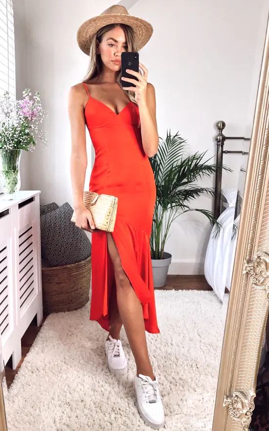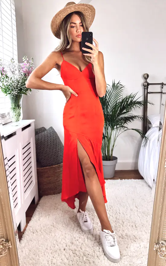 Combining an asymmetrical hemline, side split and vibrant red colouway, Deanna is the dress that’s impossible to forget.