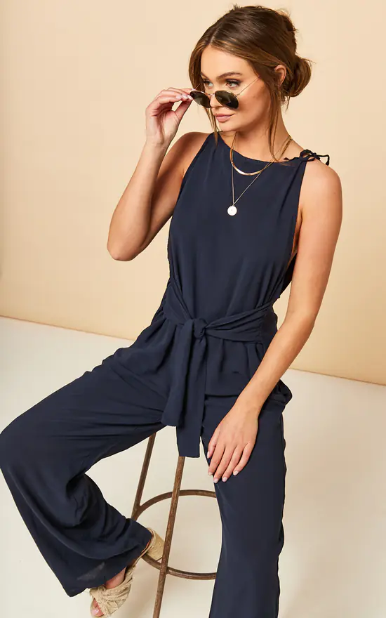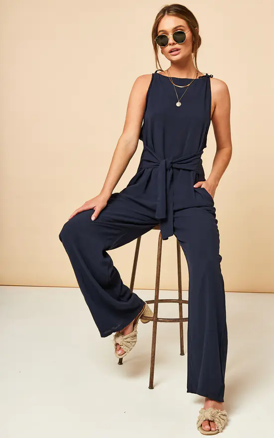 Nail summertime chic in this tie front jumpsuit. Easy to dress up with heels or keep casual with trainers – it’s perfect day or night.