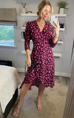 D.Anna Animal Print Smocked Long Sleeve Wrap Dress And Belt Fastening In Black And White