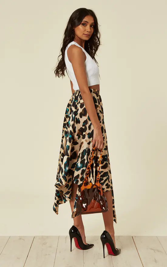 Redefine your looks with the chic and floaty fit of this midi skirt, featuring a striking animal print that’s sure to give you a stand out. Perfect for an evening night out or a work to party outfit.