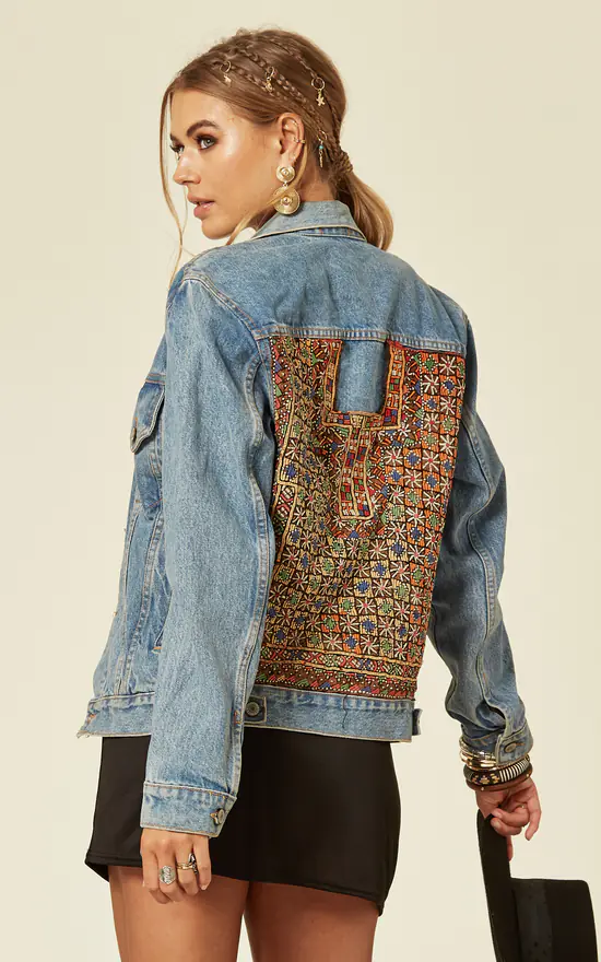 A hand picked Levis vintage jacket that has been lightened, softened and distressed, then embroidered on the back.
