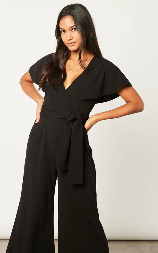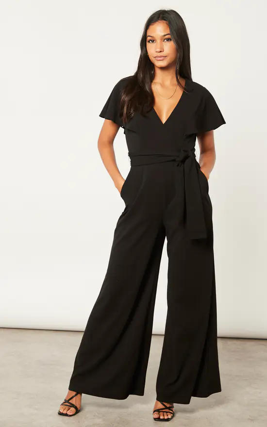 We love this Black wide leg crepe feel jumpsuit, flattering cape sleeve with v-neck to keep it feminine and a tie to cinch in your waist. Great for the office then chuck on your heels in the evening for a more sophisticated look and grab yourself a cocktail!