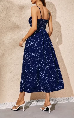 Relaxed Button Down Playsuit In Green With White Polka Dot Print