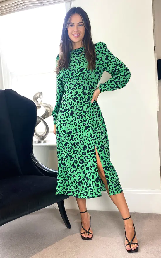 Add glam to your wardrobe with our Cass dress. Featuring a side split, cinched waist and long sleeves. Pair with trainers or heels and a clutch.