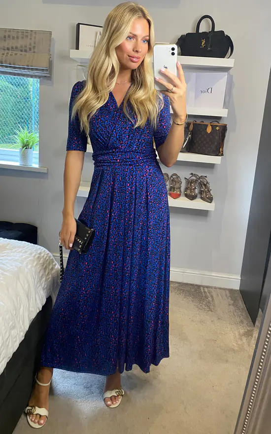 Cut from a soft and fluid blended jersey, this cross-over front V-neck dress is designed with a ruched elasticated waistband that draws in your silhouette for a form-flattering fit. The dress has two side pockets for carrying essentials such as your lipstick for that afternoon top-up.
