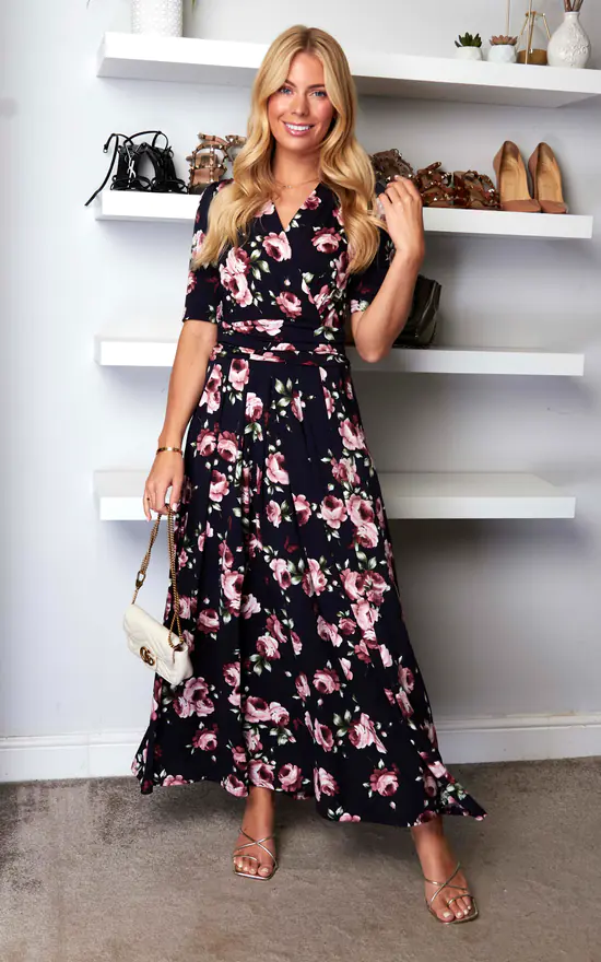 In a refined style that softly drapes and flares out at the hem for added movement, this maxi dress by Jolie Moi is decorated in an eye-catching animal print. Equipped with an elasticated waist to ensure a form-flattering silhouette, completed with a flattering v-neckline and short sleeves, it is made from a soft and fluid blended fabric and is a pretty piece you’ll reach for again and again.