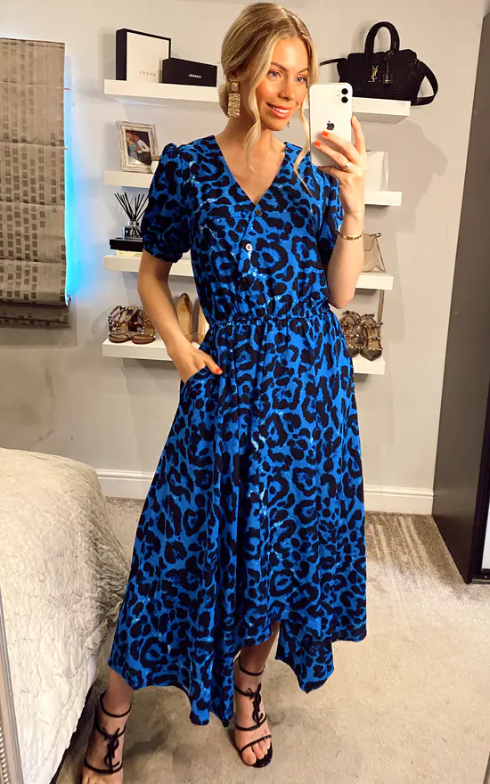 Flaring out at the hem for a feminine silhouette, this dress by Jolie Moi adds impact with a flowing handkerchief hemline. Crafted from a soft woven fabric with lining for comfort, it is framed with a faux-wrap V-neck front with statement button detailing and completed with an elasticated waist and side pockets. Wears well with strappy heels for a polished office look or plimsolls for casual catch-ups.