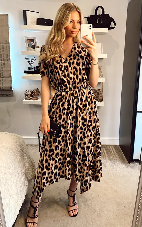 Crafted from a soft woven fabric with lining for comfort, it is framed with a faux-wrap V-neck front with statement button detailing and completed with an elasticated waist and side pockets. Wears well with strappy heels for a polished office look or plimsolls for casual catch-ups.