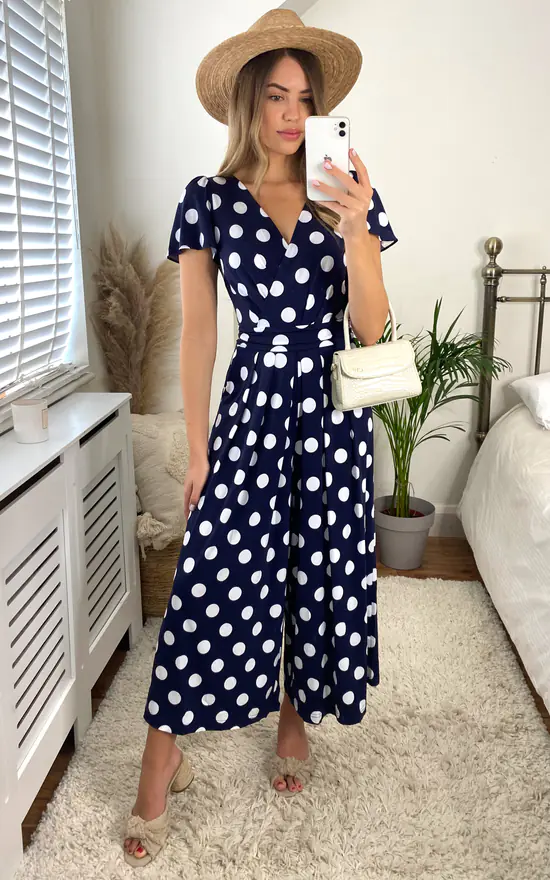 Jump start your new season wardrobe with this chic and versatile jumpsuit from Jolie Moi. This all-in-one piece is a perfect day-to-night wonder. Striking prints with a classic wrap shape and cut in a cropped silhouette creates the perfect smart/casual balance.
