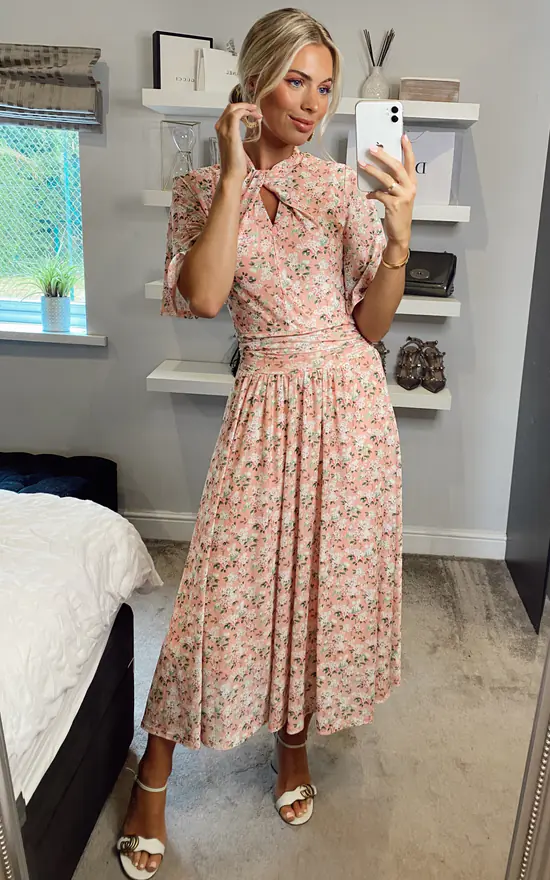 Decorated in an all over floral print and equipped with an elasticated waist to ensure a form-flattering silhouette, completed with a flattering funnel neckline with key hole detailing and flared elbow length sleeves, it is made from a soft and fluid blended mesh fabric and is a pretty piece you’ll reach for again and again.