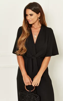 Bella And Blue Exclusive Kimono Knot Top Culotte Jumpsuit In Black
