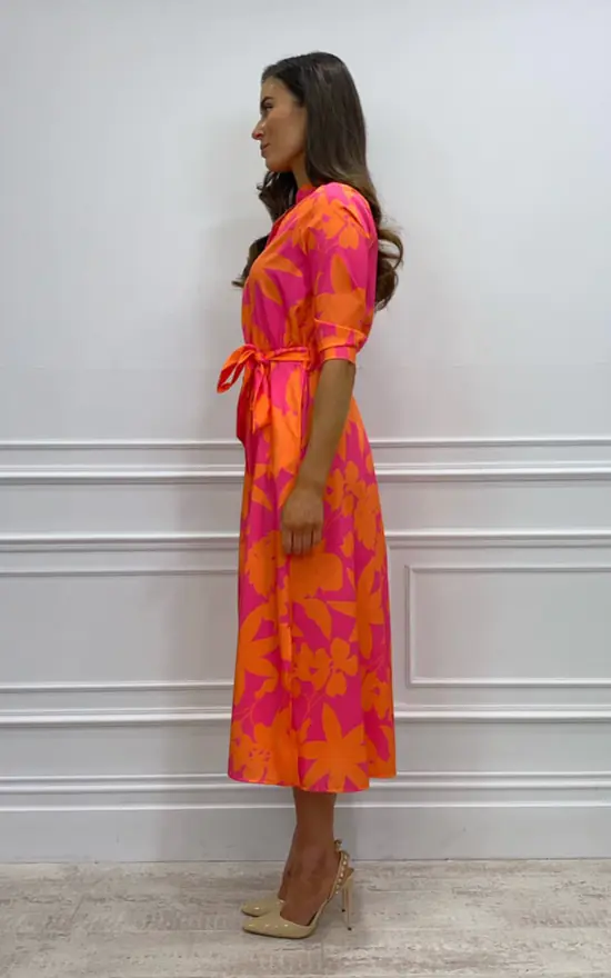 The gorgeous Capri dress from Kate & Pippa has returned with a new floral print and the most gorgeous vibrant colours. This dress features a mandarin style collar, buttons and a tie belt. A real summer vibe!