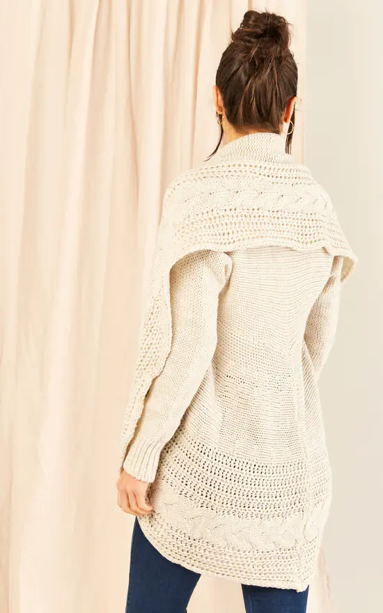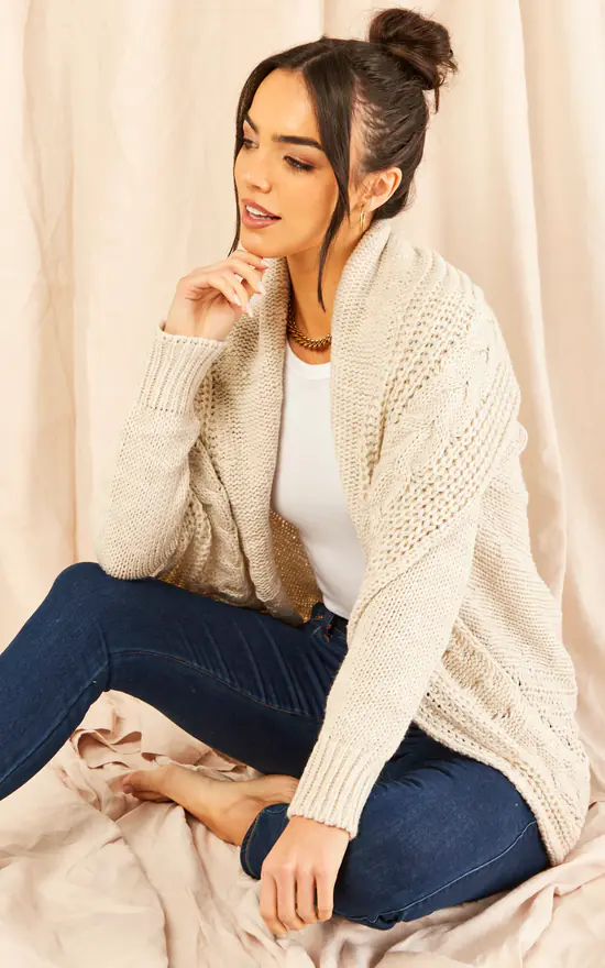 Keep yourself warm all year long in this thick, chunky cardigan in gorgeous light beige cream colour.