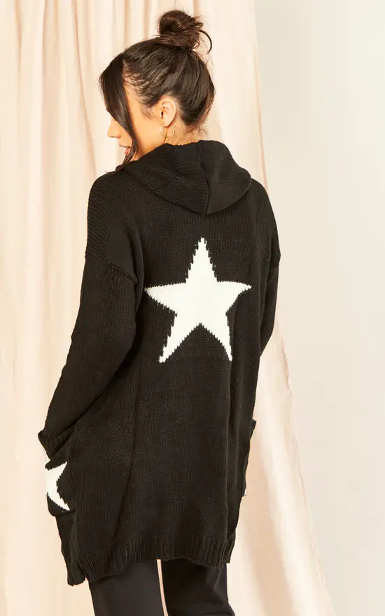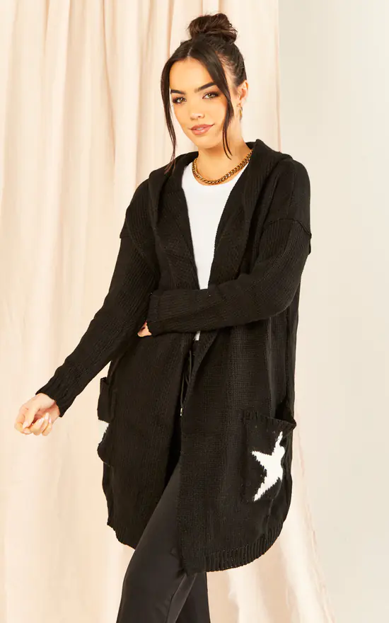 It’s attention grabbing, it’s sporty, it’s cosy. This open front, hooded cardigan features a star motif on the back and both pockets and a relaxed silhouette for your day to day comfort.