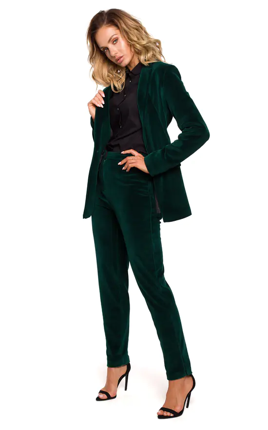 Smooth stretch cotton-based blazer with classic lapel collar and decorative single button fastening is a unique piece you can style in a number of ways.