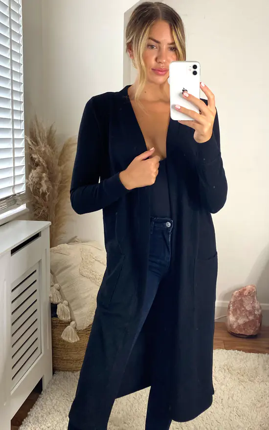 Equal part casual, equal part chic – this black longline cardigan is the everyday essential that will always have your back.