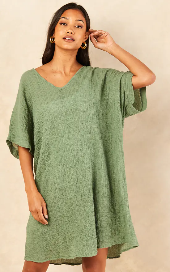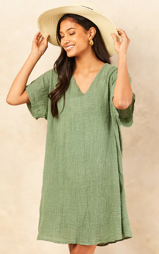 Super soft and airy Tunica Dress, perfect for the beach or those hot, hot summer days where you feel like wearing nothing. The Kaki Dress is a little see through.