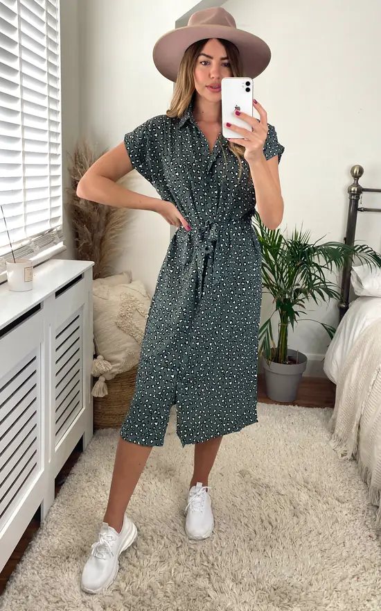 Effortless style made easy! A versatile shirt style dress with a self tie waist and striking print – taking casual chic to a whole new level.