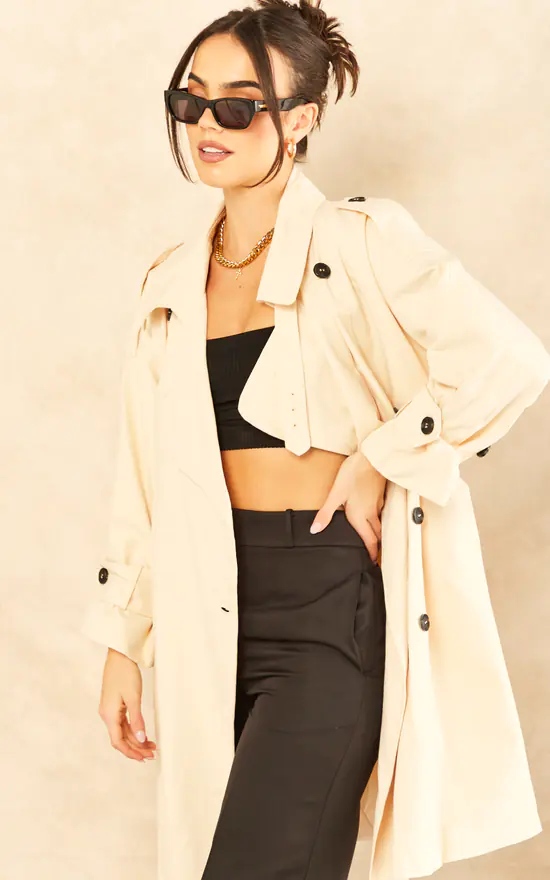 – Belted waist