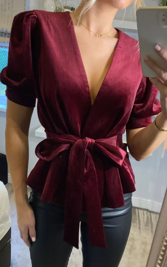 A gorgeous peplum jacket in luxurious and rich velvet cord. A low opening meets a cinch waist with velvet sash belt. Peasant sleeve to elbow. 95% polyester 5% elastane. Machine wash 30c.