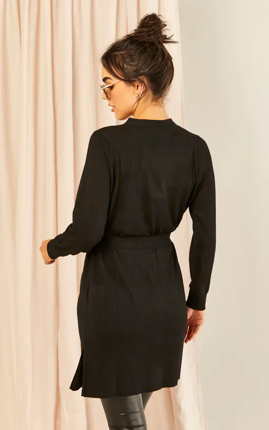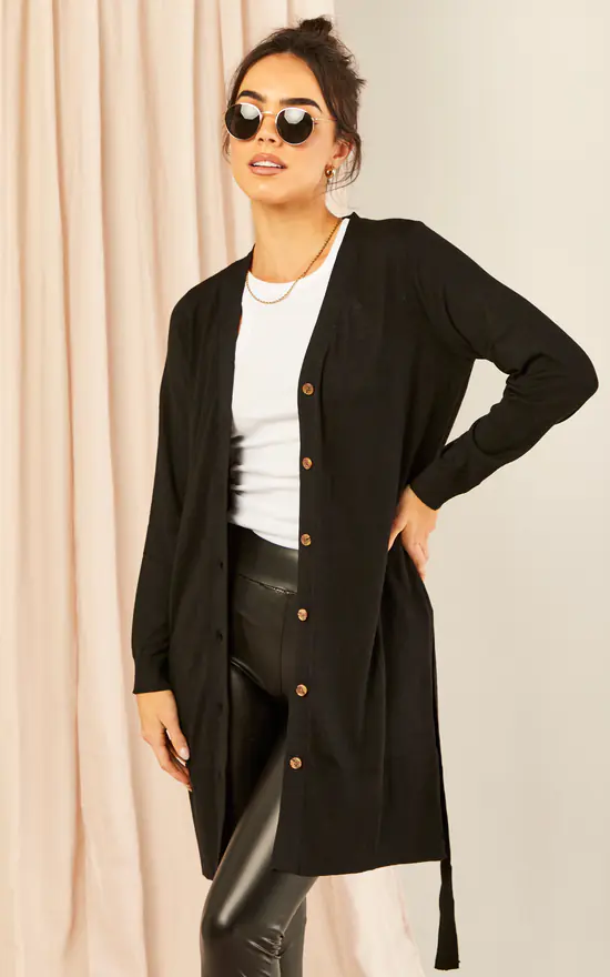 Cosy and chic, this black knitted cardigan with button detail and detachable belt is the versatile layer you’ll be living in for the foreseeable future.