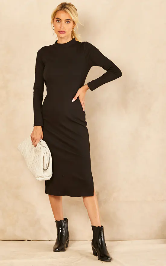 Fuss-free and chic, this ribbed midi dress is made for effortless styling. Wear with boots and a leather jacket.